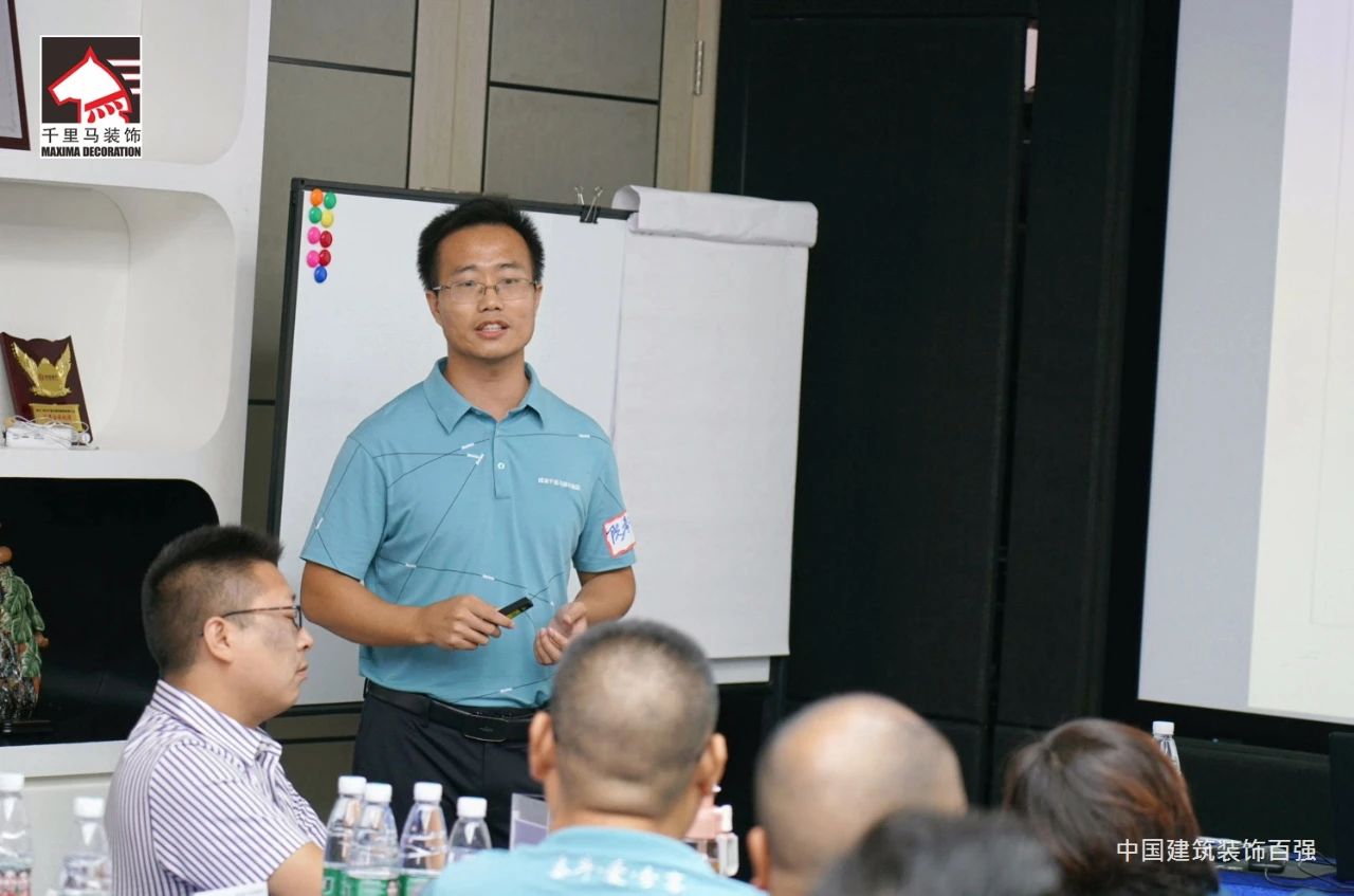 邁進會議室,迎面而來的是擺放得整整齊齊的藍色課桌,抬頭看,清新怡人的藍白色相間的橫幅映入眼簾——“深圳千里馬裝飾集團MTP管理才能發展培訓”,原來是為了提升中層管理